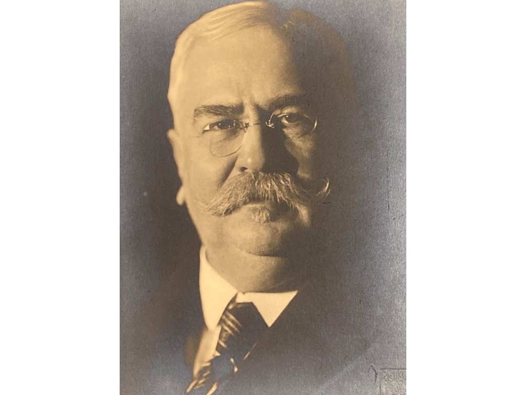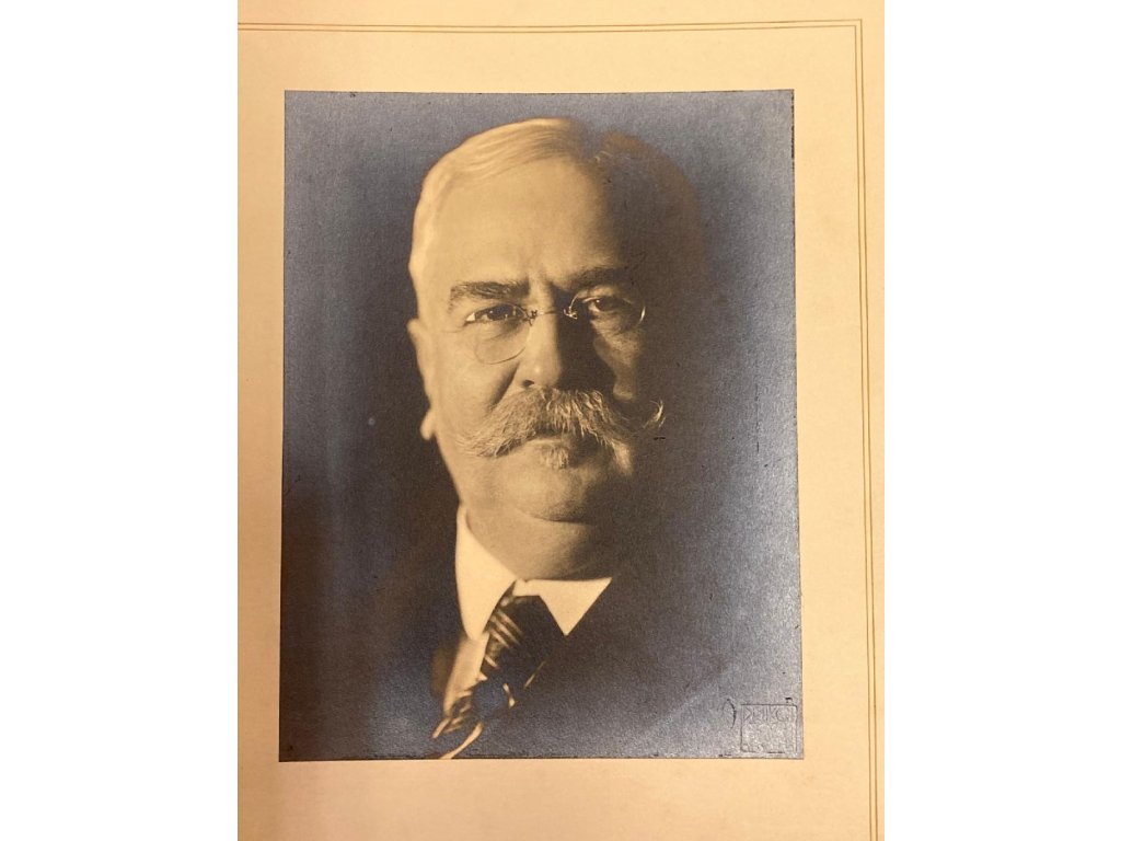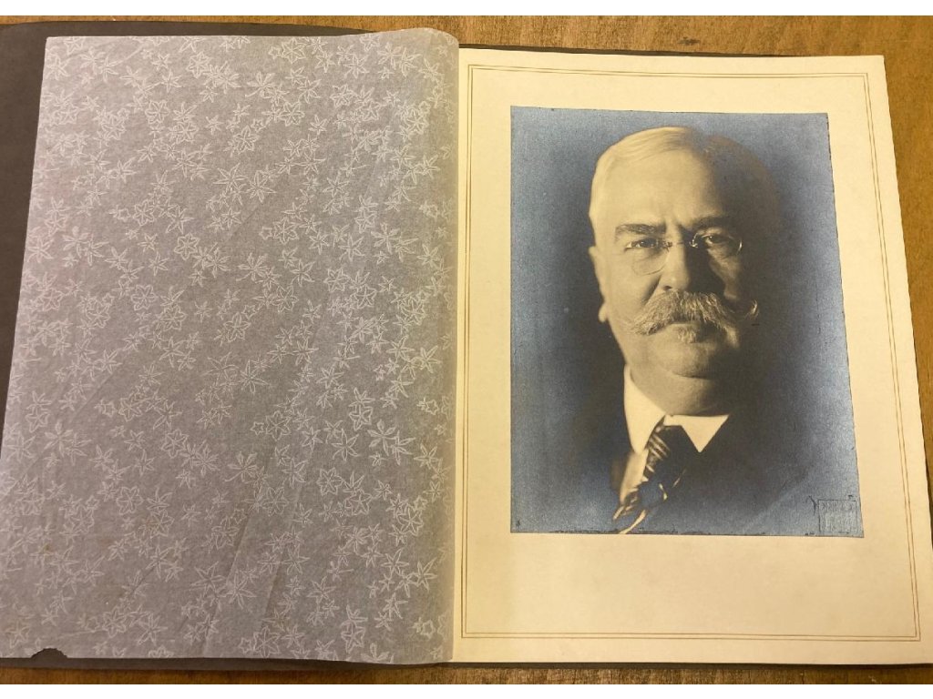 originální velká bromostříbrná fotografie prvorepublikového ministra a poslance Josefa Dolanského, nalepeno na původní originální paspartě a komponováno v originálních ochranných deskách se slepotiskovým razítkem fotoateliéru!!!