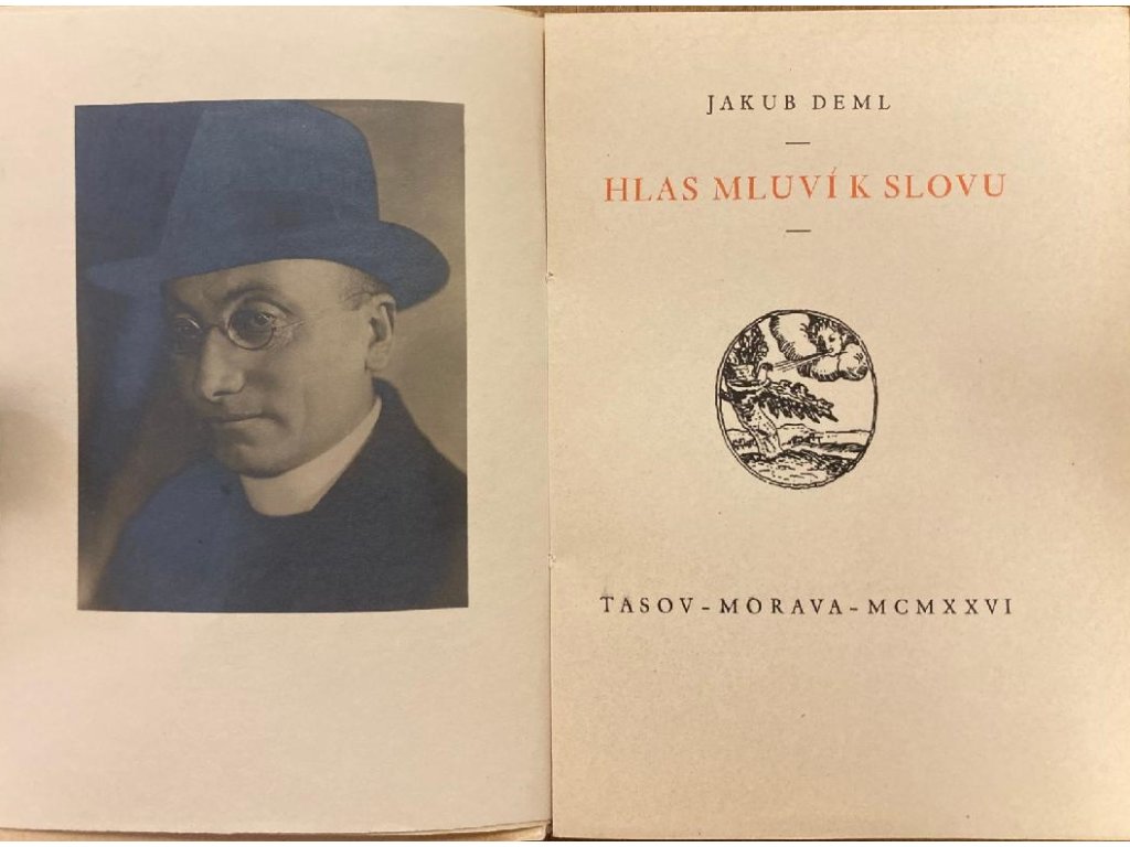 původní originální bromostříbrná fotografie: portrét Jakuba Demla, foto František Drtikol, foto komponováno v knize Hlas mluví k slovu, vydáno v Tasově roku 1926, číslovaná bibliofilie