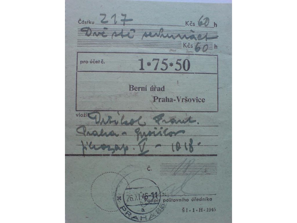 zajímavý unikátní dobový dokument ze 26.11.1946