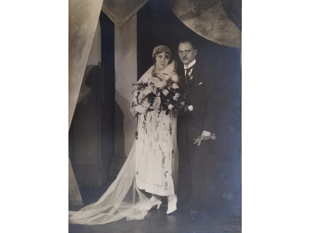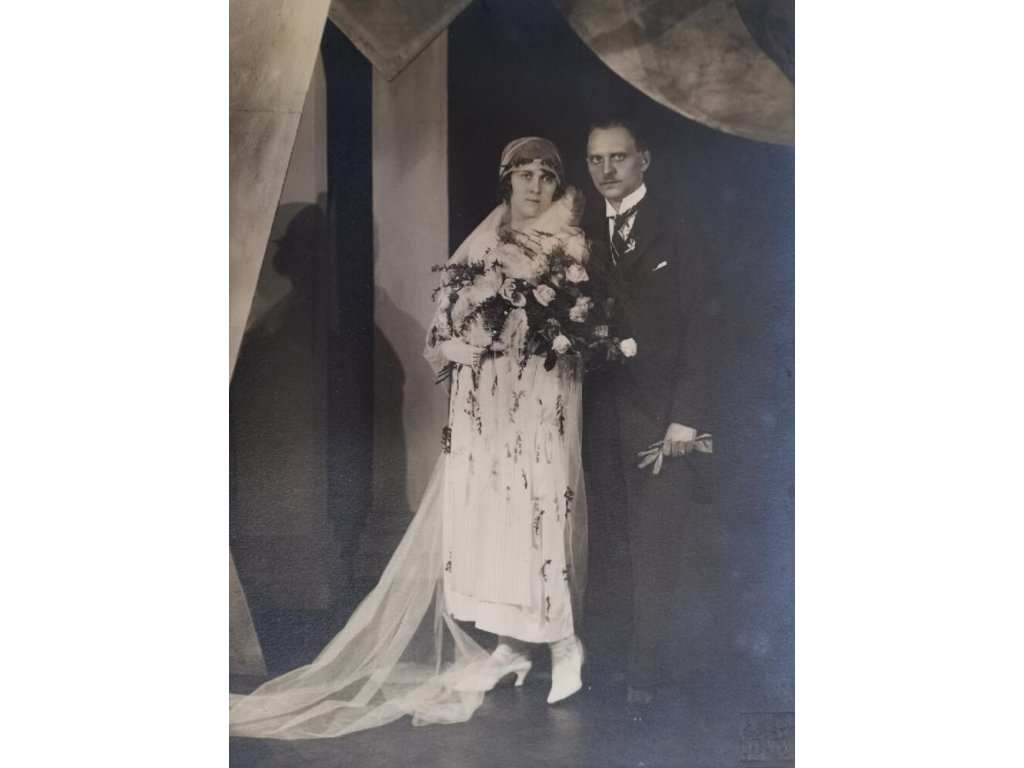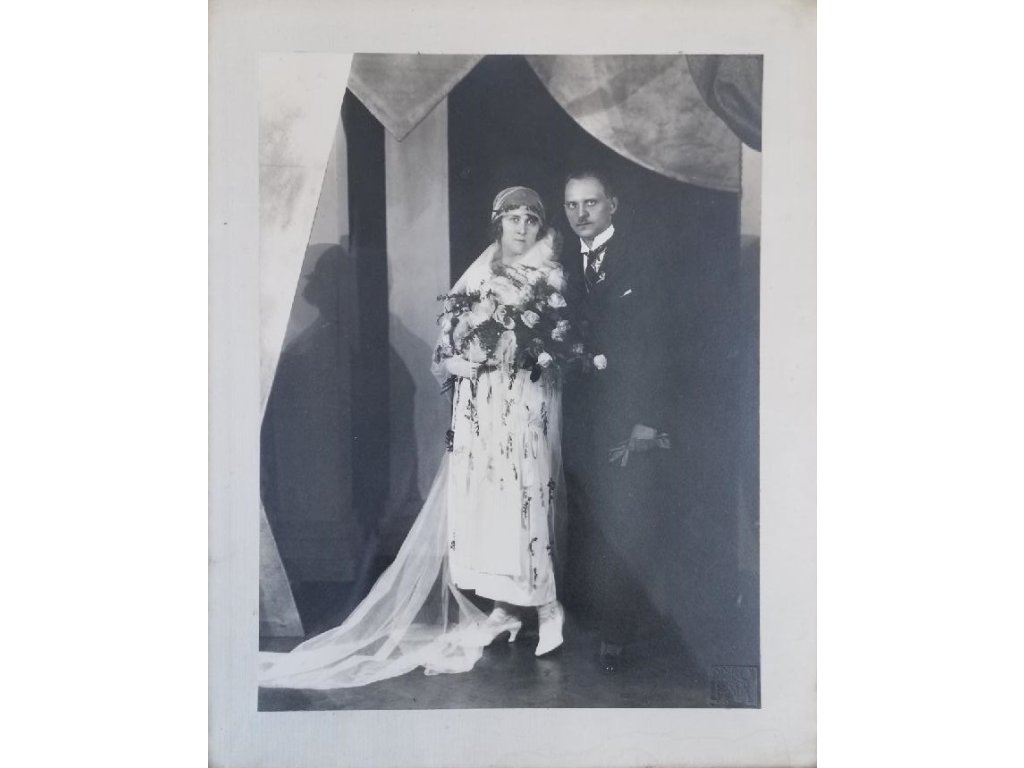 původní originální fotografie - svatební foto, krásná ukázka komerčního portrétu ovšem ve známých kulisách ART DECO, toto pozadí používal František Drtikol pro své mimořádné kubistické, art decové akty!!!