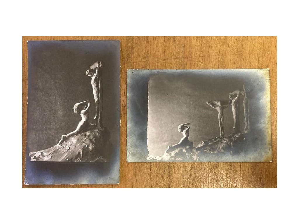dvě velmi vzácné bromostříbrné fotografie z ranné tvorby Františka Drtikola, autorem plastiky i fotografie je František Drtikol, provenience - autorova pozůstalost