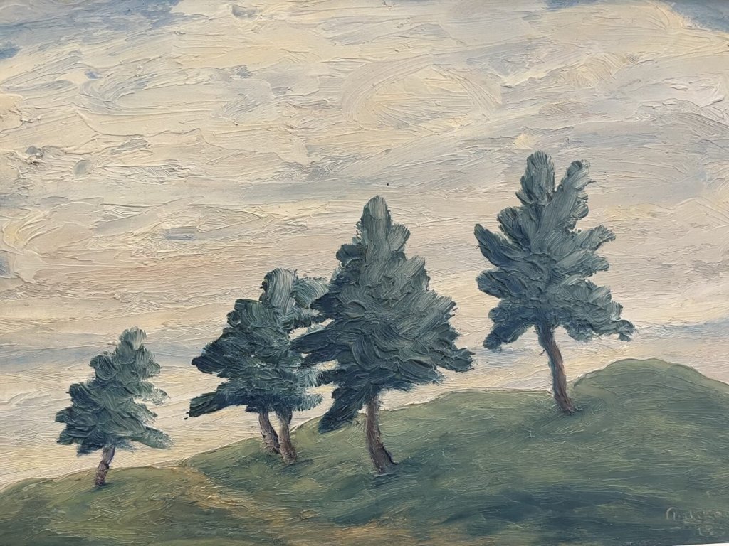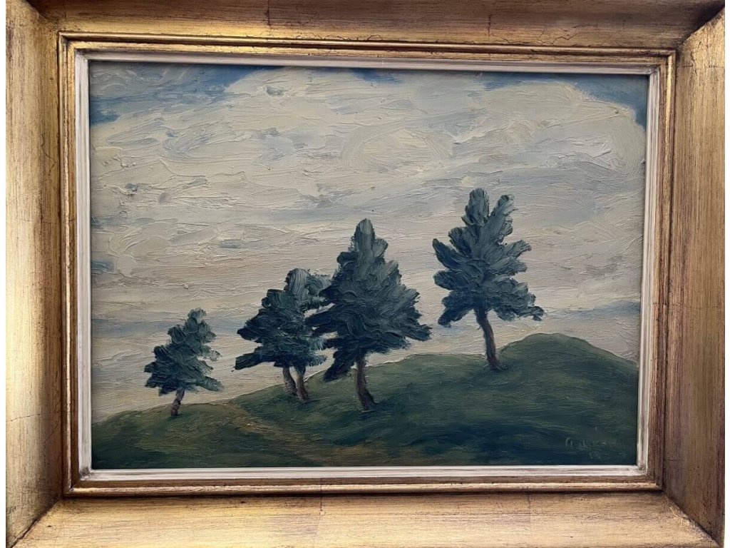 originální malba, olej na desce, klasická Drtikolova krajinka...